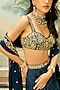 Navy Blue Russian Jacquard Embroidered Kalidar Lehenga Set