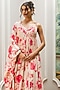 Paulmi & Harsh presents an off-white anarkali in georgette and chiniya silk base with floral print. It is paired with an embroidered dupatta. Style this anarkali with juttis and minimal jewelry, perfect for festive lunches, family gatherings, or casual daytime outings.