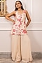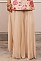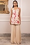 Paulmi & Harsh presents an off-white kurta in chiniya silk base with floral print and hand embroidery. It is paired with georgette palazzo pants. Style this floral kurta with juttis and minimal jewelry, perfect for festive lunches, family gatherings, or casual daytime outings.