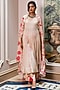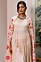 Paulmi & Harsh presents an off-white anarkali in malai chanderi base. It is paired with chiniya silk floral printed pants and a printed dupatta. Style this anarkali with juttis and minimal jewelry, perfect for festive lunches, family gatherings, or casual daytime outings.