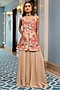 Paulmi & Harsh presents an old rose kurta in chiniya silk base with floral print and pita work. It is paired with georgette palazzo pants. Style this set with soft waves and minimal jewellery, perfect for daytime weddings, garden parties, or sangeet ceremonies.