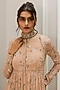 Paulmi & Harsh presents an old rose anarkali in georgette with churidar sleeves, pita hand embroidery and floral print. Style this anarkali with soft waves and minimal jewellery, perfect for daytime weddings, garden parties, or sangeet ceremonies.