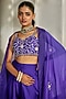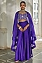 Featuring an orchid purple cape in pure organza base with hand embroidery. It is paired with a pure chiniya blouse having aari and zardosi hand embroidery, including palazzo pants. Style it with zircon jewellery, soft curls and embellished heels, perfect for weddings or sangeet ceremony.