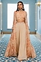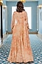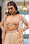 Paulmi & Harsh presents a peach and ivory jacket in georgette base with floral print and embroidery. It is paired with an embroidered blouse and palazzo pants. Style this set with soft waves and minimal jewellery, perfect for daytime weddings, garden parties, or mehendi ceremonies.