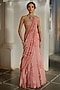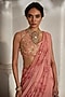 Featuring a pink saree in chiffon base with print and embroidery. It is paired with a hand embroidered gokul chiniya blouse. Accentuate it with statement earrings and heels for engagement ceremonies.