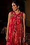 Featuring a pink maxi dress in crepe base with digital floral jaal print, gathering and layering details, including mono tone sequins, cutdana, moti and mirrors highlight.