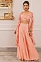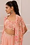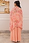 Paulmi & Harsh presents a pink jacket in georgette base with floral print. It is paired with a blouse and flowy palazzo pants. Style it with soft waves and minimal jewelry, perfect for daytime weddings, garden parties, or festive luncheons.