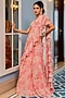 Pink Georgette Floral Printed Ruffled Layered Saree Set