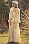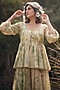 Featuring a pista green and ivory peplum in malai chanderi base with puff long sleeves, print and french knot detail. It is paired with palazzo pants and a scarf. Accentuate it with minimal jewellery and heels for a festive occasion or family gathering.