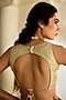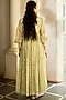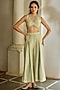 Featuring a pista green hand-woven jacket in jamawar jacquard base with embroidery. It is paired with a blouse and a palazzo. Accentuate it with dangler earrings and heels for a festive occasion or wedding ceremony.