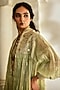 Featuring a pista green handwoven jacket in jamawar jacquard and tissue base with boota detail. It is paired with a jamawar jacquard hand embroidered blouse and palazzo pants. Accentuate it with statement earrings and heels for engagement or sangeet ceremonies.