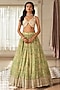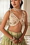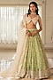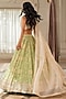 Paulmi & Harsh presents a pista green and off-white lehenga in organza base with floral print. It is paired with a chiniya silk blouse having sequins, nakshi and dabka embroidery, including a pure organza scalloped dupatta. Style this set with soft waves and minimal jewellery, perfect for daytime weddings, mehendi, or engagement ceremonies.