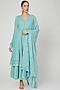 Featuring a powder blue anarkali in cotton base with double layer and a cutwork border. It is paired with a matching dupatta.