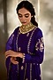Featuring a purple anarkali in chiniya base with aari and zardosi hand embroidery. It is paired with pants and a pure organza embroidered dupatta. Style it with zircon jewellery, soft curls and embellished heels, perfect for weddings or sangeet ceremony.