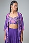 Featuring a purple jacket in georgette base with print. It is paired with palazzo and a hand embroidered blouse. Accentuate it with zircon dangler earrings and embellished heels for festive celebrations, sangeet or cocktail ceremony.