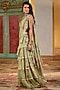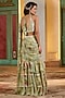 Featuring a sage green pre-draped ruffled saree in chiffon base with lace detailing. It is paired with a chiniya silk blouse having a v-neckline. Accentuate it with statement jewellery and metallic heels for an opulent look, perfect for mehendi, receptions and glamorous festive celebrations.