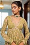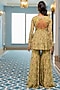 Paulmi & Harsh presents a sage green peplum top in georgette base with floral print and hand embroidery. It is paired with sharara pants. Style this set with soft waves and minimal jewellery, perfect for daytime weddings, garden parties, or mehendi ceremonies.