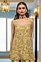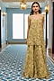 Paulmi & Harsh presents a sage green short kurta in georgette base with floral print and pita embroidery. It is paired with sharara pants. Style this set with soft waves and minimal jewellery, perfect for daytime weddings, garden parties, or mehendi ceremonies.