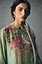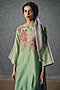 Featuring a sky blue kurta in chiniya silk base with floral print. It is paired with striped pants side patches and a pure organza scarf. Style it with stud earrings, a statement bag, and pump heels for a refined look, perfect for a brunch, formal meetings, or day events.