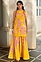 Featuring a sunny yellow kurta in chiniya silk base with sequins embroidery and hand-tucked tassels, adorned with floral print. It is paired with a palazzo. Accentuate it with dangler earrings and heels for a festive occasion, haldi or wedding ceremony.
