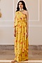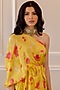 Featuring a sunshine yellow one-shoulder draped kurta in crepe base with floral print. It is paired with matching pants.