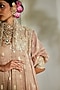 Featuring a vintage brown jacket in tissue base with jamawar embroidery. It is paired with a jacquard slip having woven boota details. Accentuate it with dangler earrings and heels for a festive occasion or wedding ceremony.