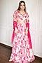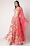 This occasion-ready white and pink lehenga in organza is enhanced with intricate print and hand embroidery, complementing the look with a matching blouse and a net dupatta. Style the look with dangler earrings or a statement necklace to make it a perfect fit for an engagement, sangeet or a wedding look.