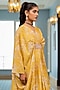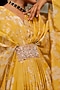 Paulmi & Harsh presents a yellow kaftan in chiniya silk base with a center belt detail and floral print. It is paired with a slip. Style this set with soft waves and minimal jewellery, perfect for daytime weddings, garden parties, or haldi ceremonies.