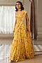 Paulmi & Harsh presents a yellow pre-draped saree in georgette base with floral print. It is paired with a blouse having crystal embellishments. Style this set with soft waves and minimal jewellery, perfect for daytime weddings, garden parties, or haldi ceremonies.