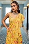Yellow Georgette Floral Printed Ruffled Layered Saree Set