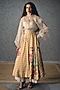Featuring an ivory shirt in organza base with puff sleeves. It is paired with a yellow and ivory modal silk checkered and floral printed skirt. Accentuate it with statement earrings and block heels for evening wear or cocktail look.