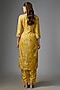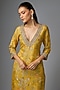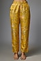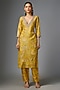 Featuring a yellow handwoven kurta in jamawar jacquard base with jaal pattern, hand painted print and zardosi embroidery. It is paired with straight cut pants. Accentuate it with jhumka earrings and juttis for festive wear, family gatherings or pooja ceremonies.