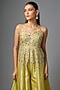 Featuring a yellow jumpsuit in jamawar jacquard base with zardosi hand embroidery. Accentuate it with statement earrings and block heels for stylish evening celebrations.