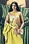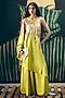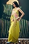 Featuring a yellow one-shoulder top in modal silk base with print and embroidery. It is paired with pants. Accentuate it with dangler earrings and heels for festive occasions.