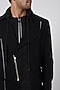 Featuring a black long zipper jacket in crepe lycra base. It is paired with matching pants and a knit inner having zipper.