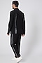 Featuring a wine suit in crepe lycra base. It is paired with matching pants and a knit inner.