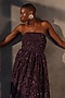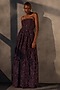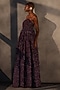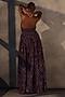 Featuring an aubergine corset maxi dress in lace base with applique, sequins and bugle bead detail. Accentuate it with statement earrings and block heels for cocktail parties.