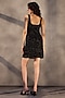 Featuring a black mini shift dress in silk georgette base with bugle beads and translucent sequins embroidery. Accentuate it with statement earrings and block heels for cocktail parties.