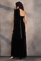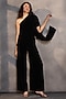 Featuring a black wrap jumpsuit in velvet base with drape detail. Accentuate it with statement earrings and block heels for cocktail parties.