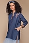 Featuring a blue shirt dress in denim base with side slits, side pockets, including contrast stitch and embroidery details. Accessorise with hoop earrings and sandals for a complete look.