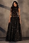 Featuring an ebony black top in chantilly lace base with beaded collar and keyhole detailing. Accentuate it with skirt, statement earrings and block heels for cocktail parties.