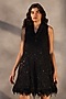 Featuring an ebony black dress in georgette base with cutaway armhole, feather hemline and tulle cowl detailing, including sequins embroidery. Accentuate it with statement earrings and block heels for cocktail parties.