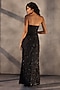 Featuring an ebony black corset dress in taffeta base with bugle bead embroidery. Accentuate it with statement earrings and block heels for cocktail parties.