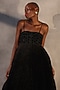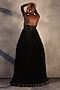 Featuring an ebony black honeycomb gown in taffeta base with sequins and bugle bead embellishments. Accentuate it with statement earrings and block heels for cocktail parties.