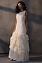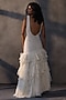 Featuring an ivory chikankari cascade gown in georgette base with bead and sequins embellishments, including boat neck and plunging jewel back. Accentuate it with statement earrings and block heels for cocktail parties.