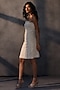 Featuring an ivory dress in georgette base with cluster sequins, 3D applique, crystal and bead embroidery. Accentuate it with statement earrings and block heels for cocktail parties.