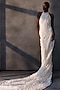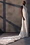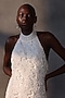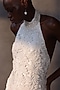 Featuring an ivory gown in guipure lace base with cutwork, scattered sequins and crystals detailing, including a jewelled collar. Accentuate it with statement earrings and block heels for cocktail parties.