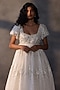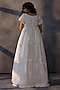 Featuring an ivory gown in lace base with floral applique, scattered bugle beads, sequins and crystal banding detail, including victorian sweetheart neckline and roll-out sheer sleeves. Accentuate it with statement earrings and block heels for cocktail parties.