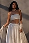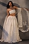 Featuring an ivory voluminous skirt in lace base with floral applique, scattered crystal, bugle beads, sequins and cutwork hemline. Accentuate it with statement earrings and block heels for cocktail parties.