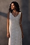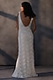 Featuring an off-white long gown in guipure lace base with crystal banding, crystal, bugle beads, sequins and lace detailing, including a jewel neck. Accentuate it with statement earrings and block heels for cocktail parties.